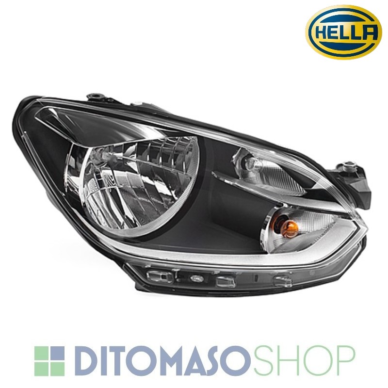 FARO DX H4 NERO C/PROFILO CROMATO C/MOTORINO ELETTRICO PER VW UP 01/2012>04/2016 HELLA [OE 1S1941016L]