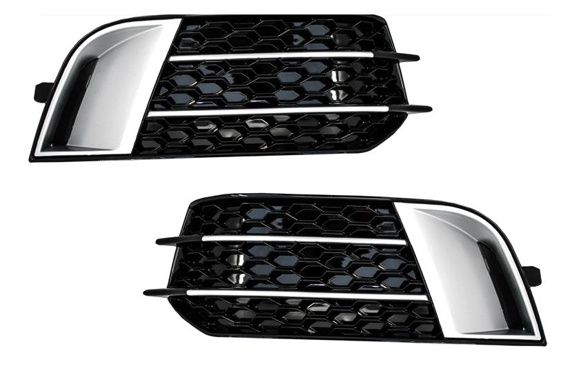KIT GRIGLIE PARAURTI ANTERIORE DX+SX NERE-CROMATE NIDO D'APE PER AUDI A1 RS1 01/2013>